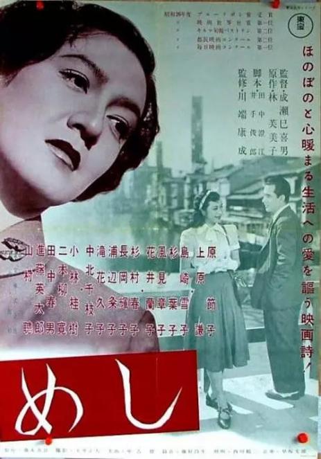 市井夫妇的庶民剧。描述的是大阪郊区低下阶层的日常生活,表现了一位没有孩子的家庭主妇(原节子饰)的失意的心态。在大阪生活的夫妇初之辅和三千代,他们的侄女从东京前来拜访。整天在家操持家务的三千代对年轻侄女的奔放轻浮的举止感到不满,也厌烦疲倦于机械般的家务琐事,于是返回东京父母家,借此时机开始思考自己的生活方式。《饭》改编自林芙美子原作,是一部优秀的心理描绘情节剧,用最少的情节和最多的表情刻画人物。庶民剧的经典之作,位列当年《电影旬报》年度十佳第二位。